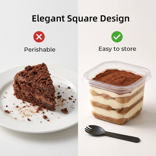 Coupes à dessert carrées jetables avec couvercles