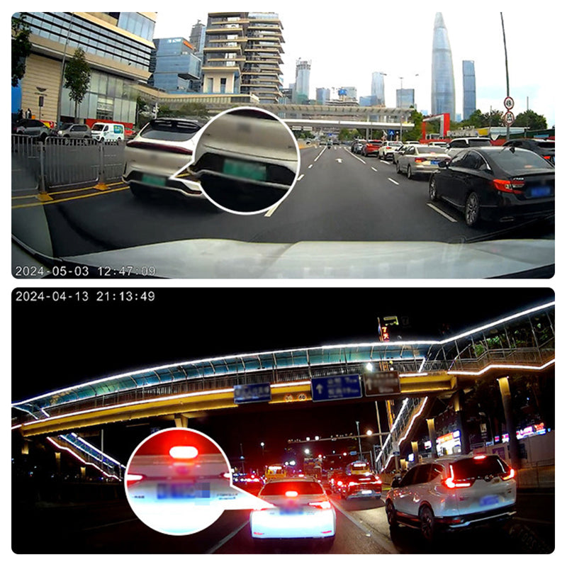 MODE STATIONNEMENT 24H/24 ET 7J/7 ET VISION NOCTURNE AMÉLIORÉE : Garantissez une sécurité 24h/24 grâce à l'enregistrement 24h/24. La caméra embarquée passe en mode basse consommation lorsque la tension est faible, tandis que la vision nocturne améliorée capture des images claires dans des conditions de faible luminosité, de jour comme de nuit.