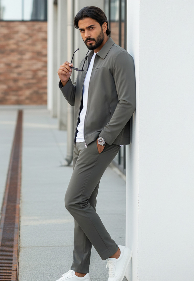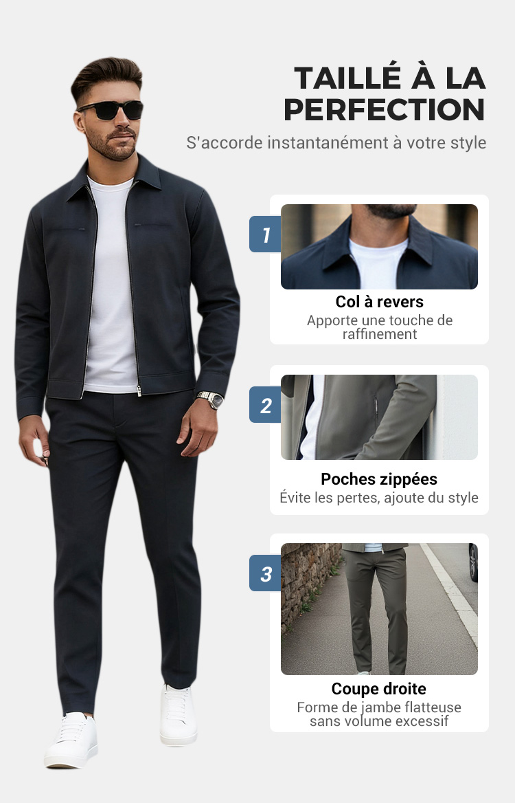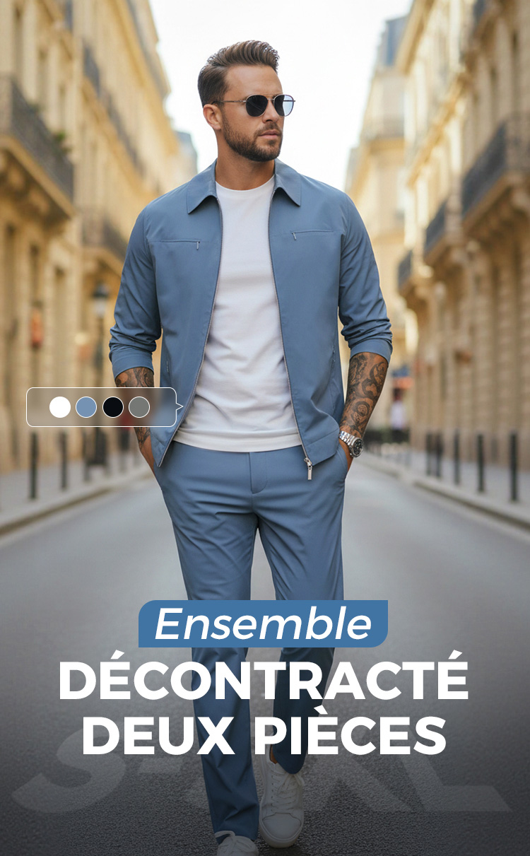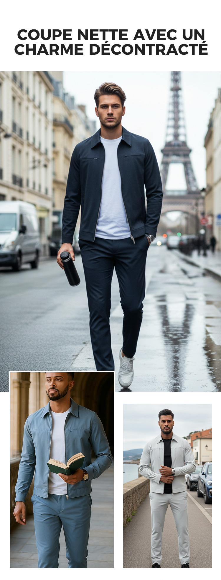 ✈️Livraison gratuite✈️Ensemble 2 pièces décontracté de couleur unie pour homme – Veste et pantalon