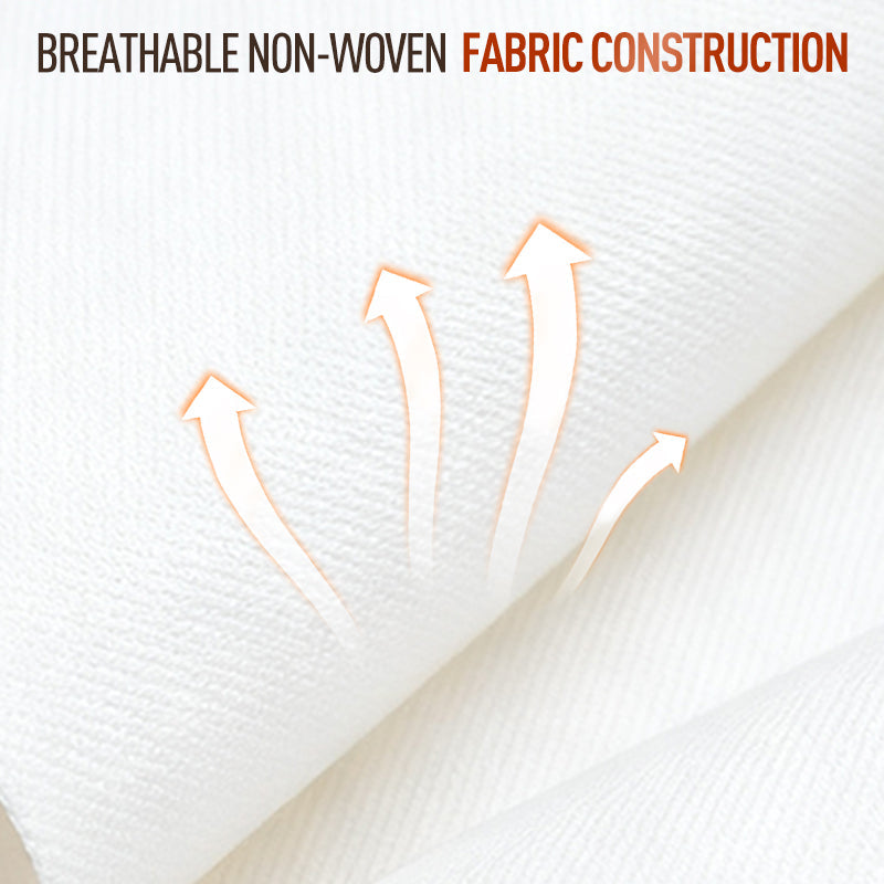 BREATHABLE NON-WOVEN FABRIC CONSTRUCTION - Crafted from high-quality medical-grade non-woven material that allows skin to breathe while maintaining optimal temperature. The hypoallergenic fabric prevents irritation and ensures comfortable extended wear without causing moisture buildup or discomfort.