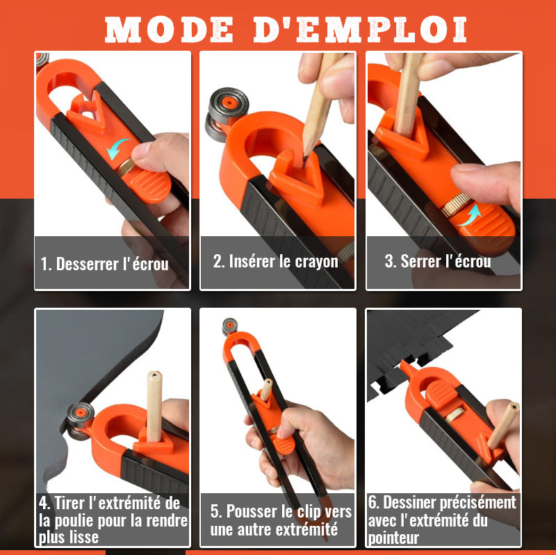 Facile à utiliser, réglage d'une seule main. Fixez le crayon au milieu, en poussant pendant le dessin, il est facile à tracer les lignes sans erreur.