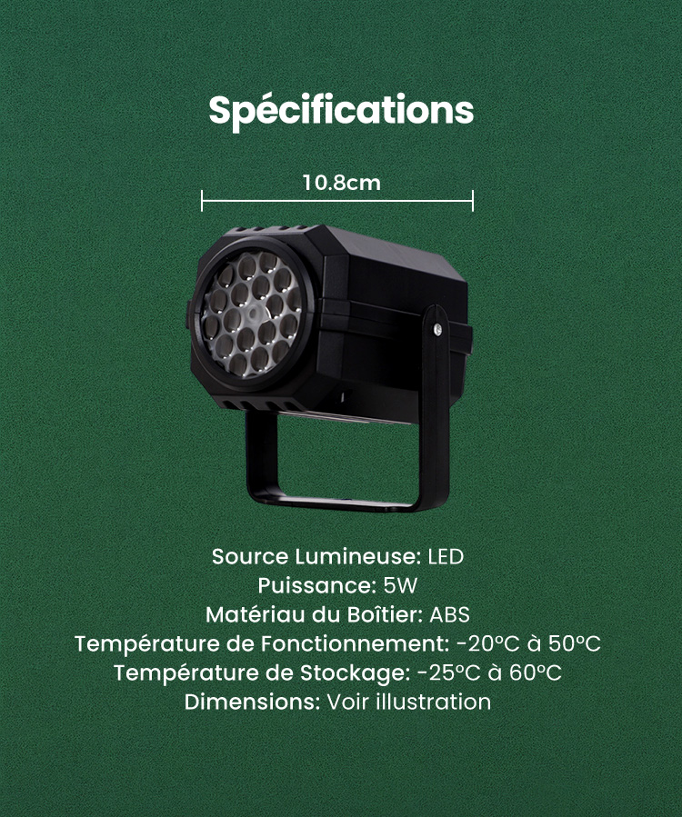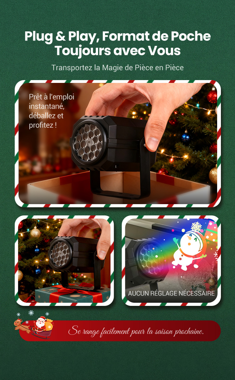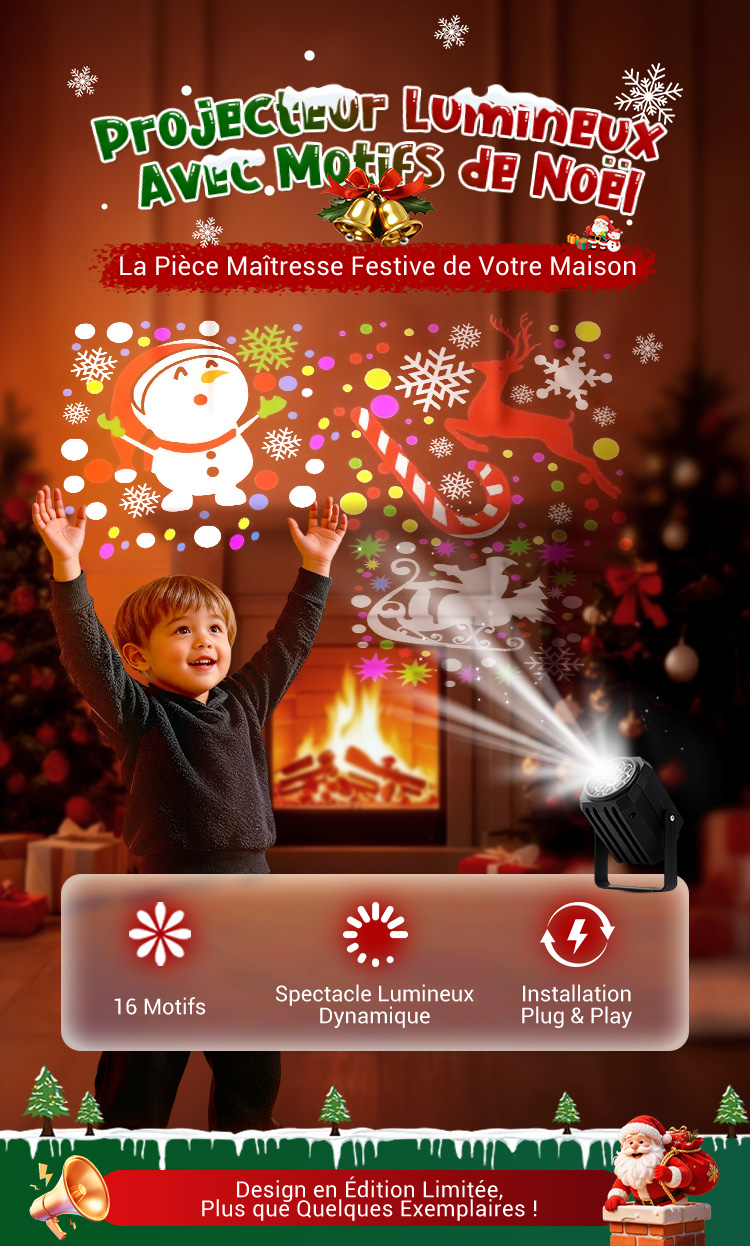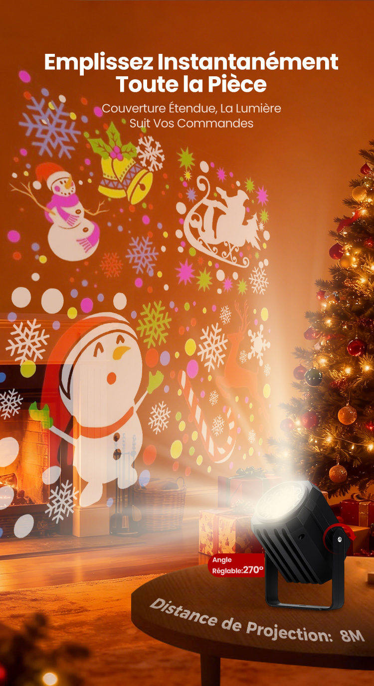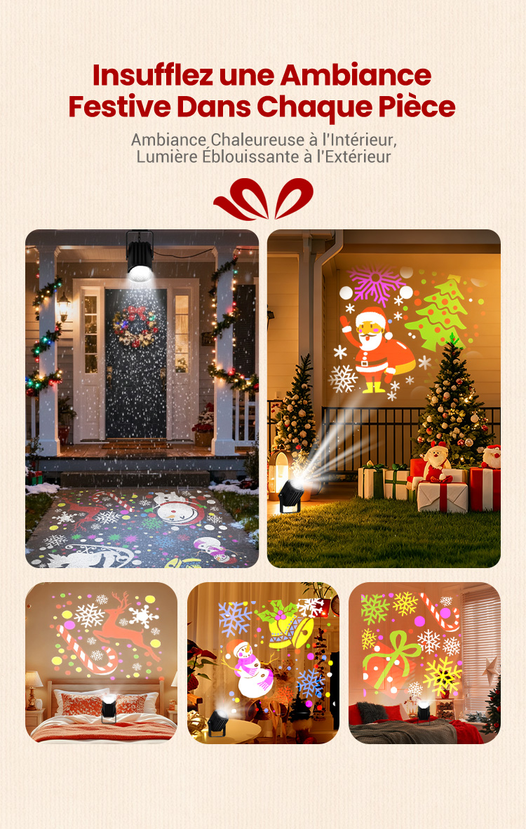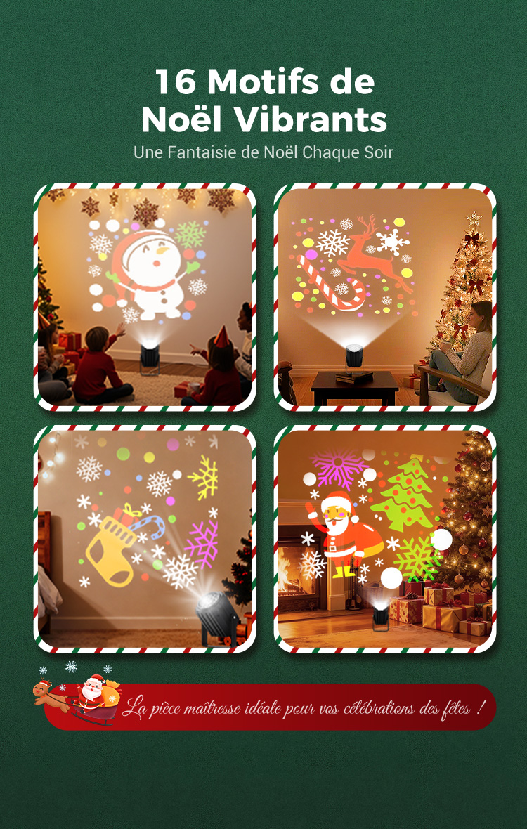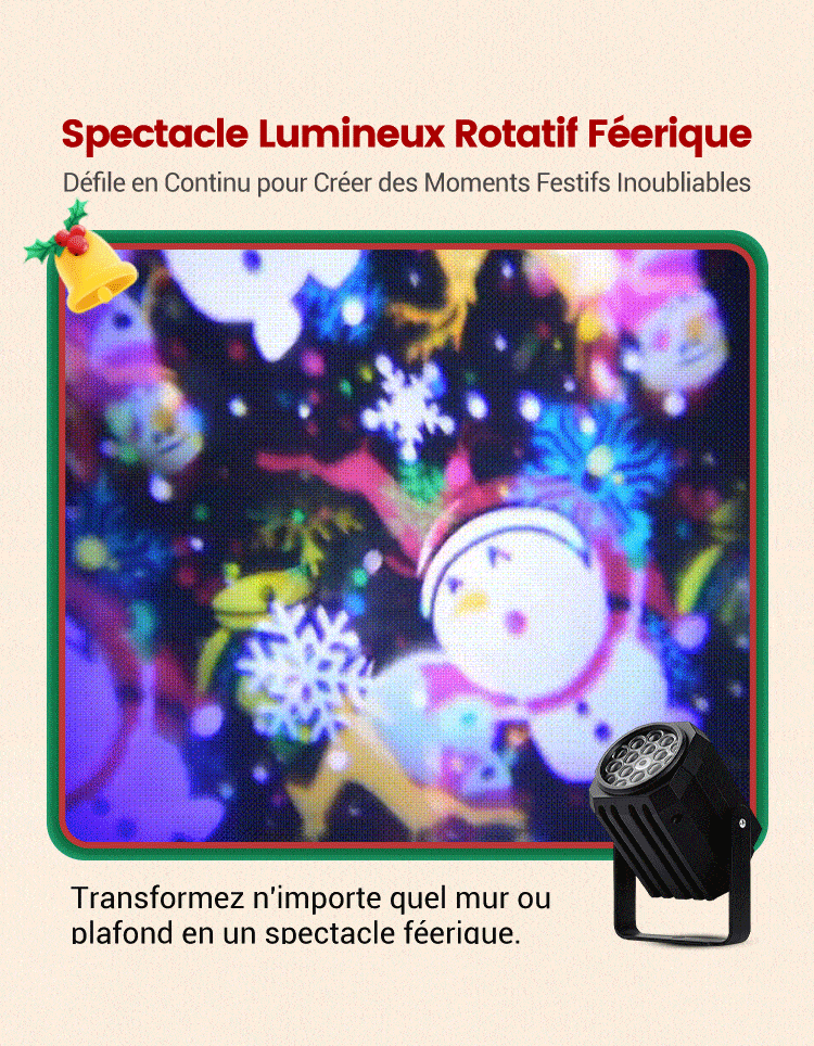 Projecteur lumineux rotatif à LED avec motifs de Noël