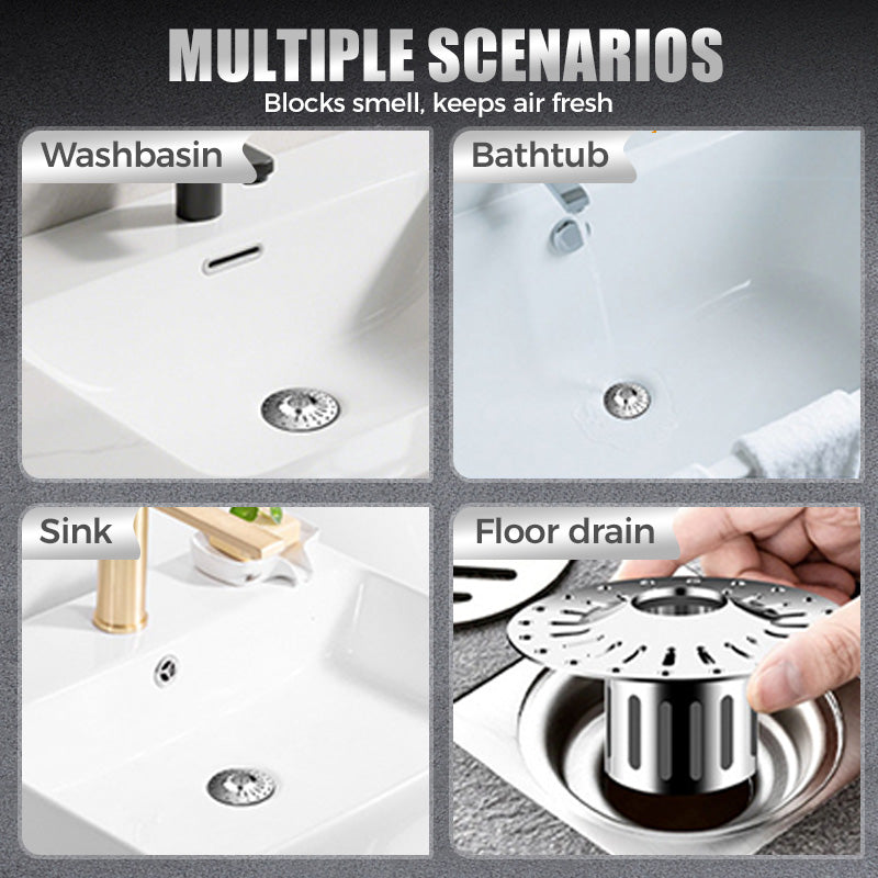 CONCEPTION UNIVERSELLE : Conçu pour s'adapter à des diamètres de trou d'évacuation compris entre 38 mm et 88 mm. Sa structure polyvalente le rend adapté à la plupart des salles de bains, cuisines et buanderies, offrant une filtration fiable et une protection anti-odeurs.